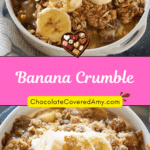 Vanilla ice cream or whipped cream are my favourites — the cold creaminess pairs beautifully with the warm banana crumble. A drizzle of caramel sauce wouldn’t hurt either.