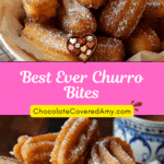 Sometimes I add a pinch of nutmeg or cardamom to the cinnamon sugar for extra warmth. I also love dipping the churro bites in melted chocolate, caramel sauce, or dulce de leche. For a fun twist, I’ll stuff them with Nutella or pipe them into longer sticks instead of bite-sized pieces.