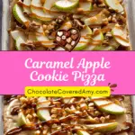 This Caramel Apple Cookie Pizza features a soft sugar cookie crust topped with creamy frosting, crisp apples, crunchy pecans, and a drizzle of caramel. It’s a stunning, crowd-pleasing dessert that captures the flavor of caramel apples in every bite.