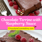 I enjoy this recipe because it has a luxurious texture and tastes like something I’d order at a fine restaurant. The terrine is creamy, velvety, and deeply chocolatey, while the raspberry sauce cuts through the richness with its fresh, tangy brightness. I like that it can be made in advance, making it a perfect make-ahead dessert for dinner parties or holidays.