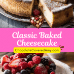 A rich, creamy, and perfectly balanced Classic Baked Cheesecake with a buttery biscuit crust and a silky smooth filling. Lightly tangy from sour cream and lemon zest, it’s baked to golden perfection and topped with fresh berries for an elegant finish.