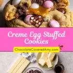 Decadent chocolate chip cookies stuffed with creamy Cadbury Creme Eggs, baked until golden with a gooey chocolate fondant center. These indulgent cookies are perfect for Easter or any time you want a nostalgic, over-the-top dessert.