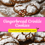 Soft, chewy gingerbread crinkle cookies coated in white and powdered sugar for a classic crackled finish, filled with warm spices and rich molasses flavor.