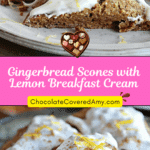 Tender, warmly spiced gingerbread scones made with oats and molasses, paired with a bright and tangy lemon breakfast cream for a cozy and refreshing morning treat.