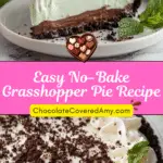 A cool, creamy no-bake Grasshopper Pie with a fluffy mint filling layered over a rich chocolate base and Oreo crust. This nostalgic dessert is refreshing, festive, and easy to prepare ahead.