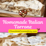 This Homemade Italian Torrone is a traditional honey nougat candy filled with toasted almonds, hazelnuts, and pistachios. Chewy, nutty, and delicately flavored with lemon and vanilla, it’s a festive Italian treat that’s perfect for sharing, gifting, or enjoying with coffee.