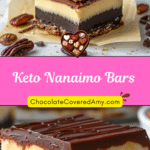 These keto Nanaimo bars are a low-carb, sugar-free version of the classic Canadian dessert, featuring a rich chocolate crust, creamy vanilla custard filling, and a smooth chocolate topping with no baking required.