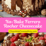 This No-Bake Ferrero Rocher Cheesecake is a decadent, chocolate-hazelnut dessert that’s rich, creamy, and effortlessly elegant. With layers of buttery biscuit crust, silky Nutella-infused cheesecake, and glossy chocolate ganache topped with crunchy nuts, it’s an indulgence that looks and tastes luxurious—no oven required.