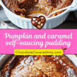 A rich and comforting pumpkin and caramel self-saucing pudding with a soft spiced sponge and a luscious caramel sauce underneath. Perfectly cozy when served warm with vanilla ice cream or cream.