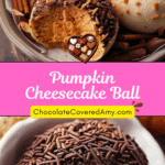 A creamy, spiced, no-bake Pumpkin Cheesecake Ball coated in mini chocolate chips and packed with toffee bits. This festive fall dessert combines the cozy flavors of pumpkin pie with the rich texture of cheesecake—perfect for parties, holidays, or cozy gatherings.