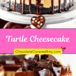 Turtle Cheesecake is a rich, layered dessert inspired by classic turtle candy, featuring a chocolate cookie crust, creamy vanilla and chocolate cheesecake layers, gooey caramel, and crunchy pecans.