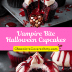 These vampire bite Halloween cupcakes feature moist red velvet cake, a creepy ‘bloody’ filling, and pale skin-tone frosting topped with spooky decorations. They’re fun, eerie, and delicious—perfect for a Halloween party centerpiece.