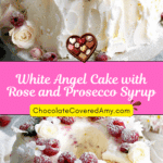 This White Angel Cake with Rose and Prosecco Syrup is an elegant, airy dessert featuring a light angel food sponge layered with silky mascarpone cream and finished with a fragrant rose and prosecco syrup. Adorned with sugared cranberries and edible flowers, it’s a stunning centerpiece perfect for celebrations.