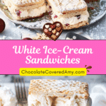 These White Ice-Cream Sandwiches are a refreshing frozen dessert made with layers of crisp wafers, creamy coconut ice cream, and tangy raspberries, finished with a white chocolate dip and a sprinkle of coconut or pistachios. They’re cool, crunchy, and creamy — perfect for summer entertaining or a make-ahead treat.