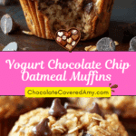 These Yogurt Chocolate Chip Oatmeal Muffins are soft, wholesome, and lightly sweetened with honey and Greek yogurt. Perfect for breakfast or snacking, they’re hearty, moist, and filled with melty chocolate chips for just the right touch of indulgence.